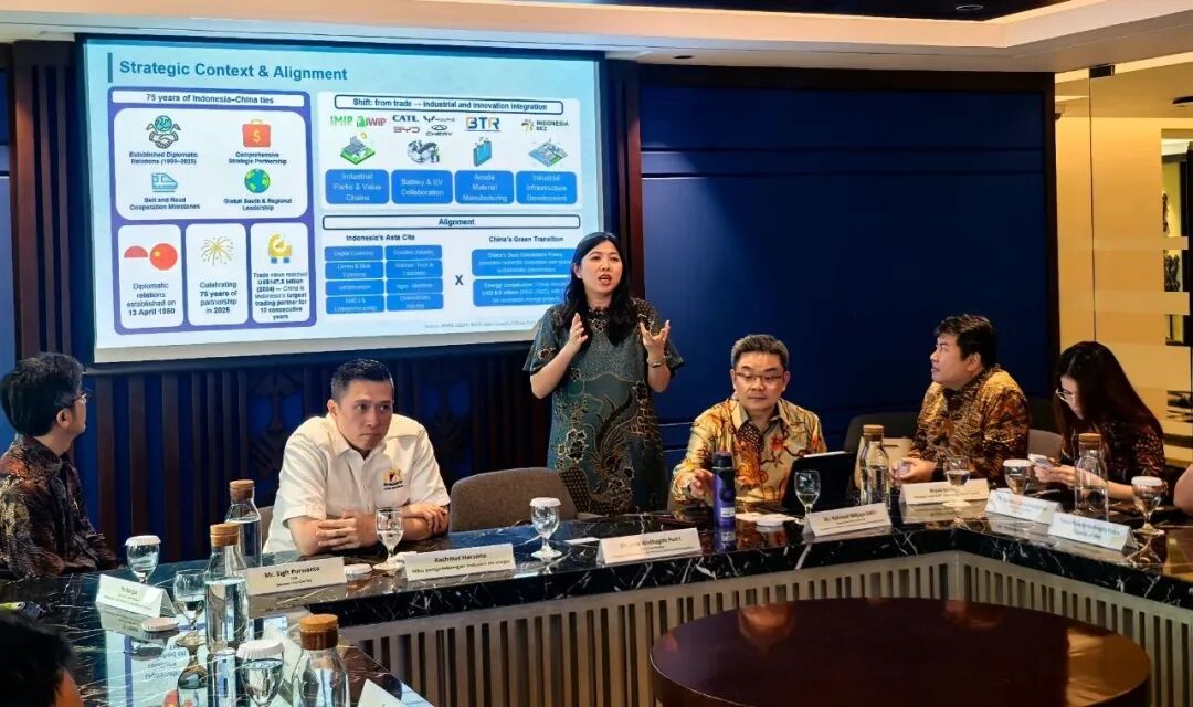 会议由印尼工商总会中国委员会(KIKT)承办。印尼工商总会作为印尼最具影响力的全国性商会,承担了包括基础设施建设、工程标准制定等多项国家重点事务。KIKT作为其官方对华合作机构,一直致力于推动中印两国在经贸、投资与产业发展领域的合作。此次出席会议的KIKT副主席林优娜博士(Jona Widhagdo Putri)在致辞中表达了对广东企业的高度认可。她表示,广东是中国最具经济活力和开放精神的地区之一,印尼高度期待与广东企业建立更紧密的合作。会中,KIKT还就矿产贸易、工业落地、汽车贸易与制造等领域与广物集团进行了深入交流,并表示将结合广物集团的产业与资源优势,在钢铁、能源,尤其是氢能及其他工业领域展开更深层次的合作。
